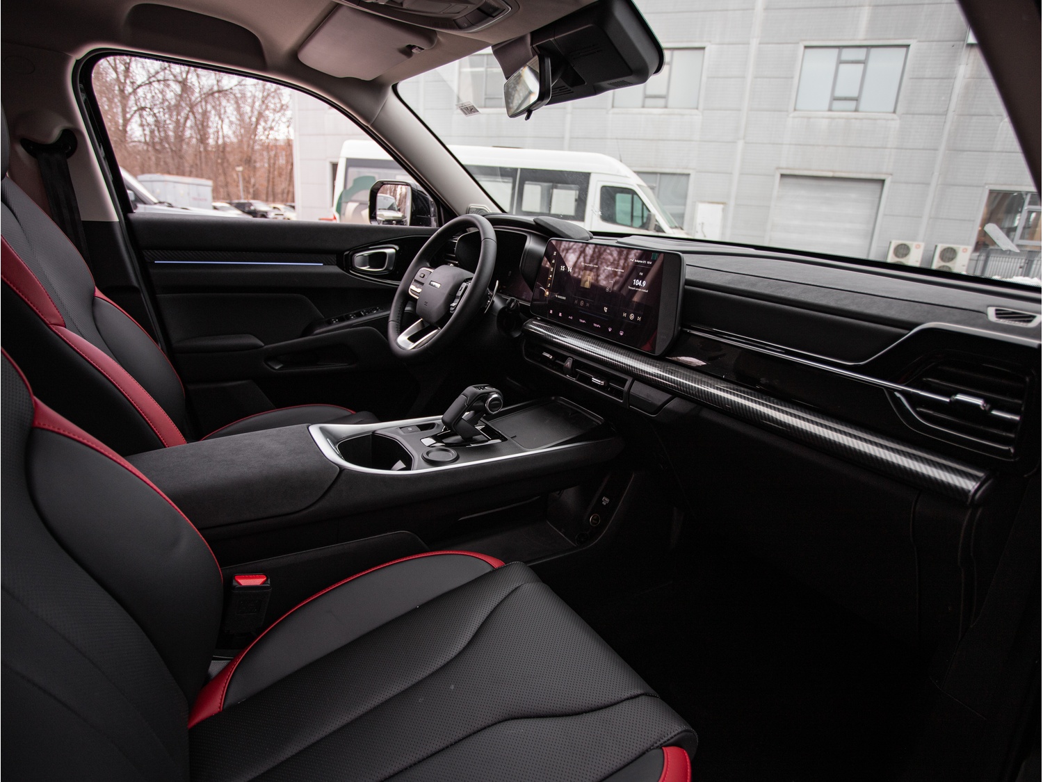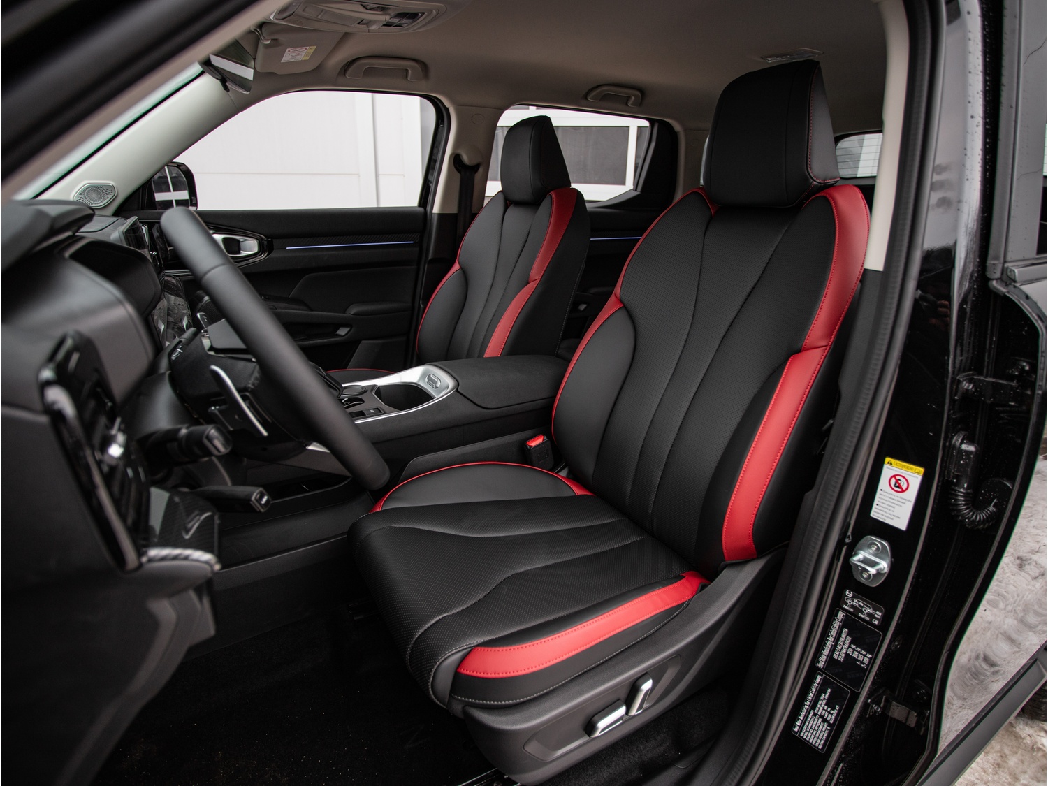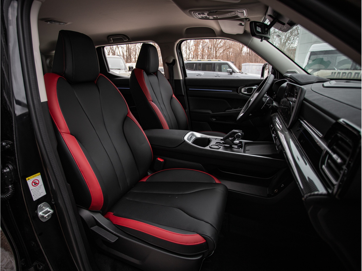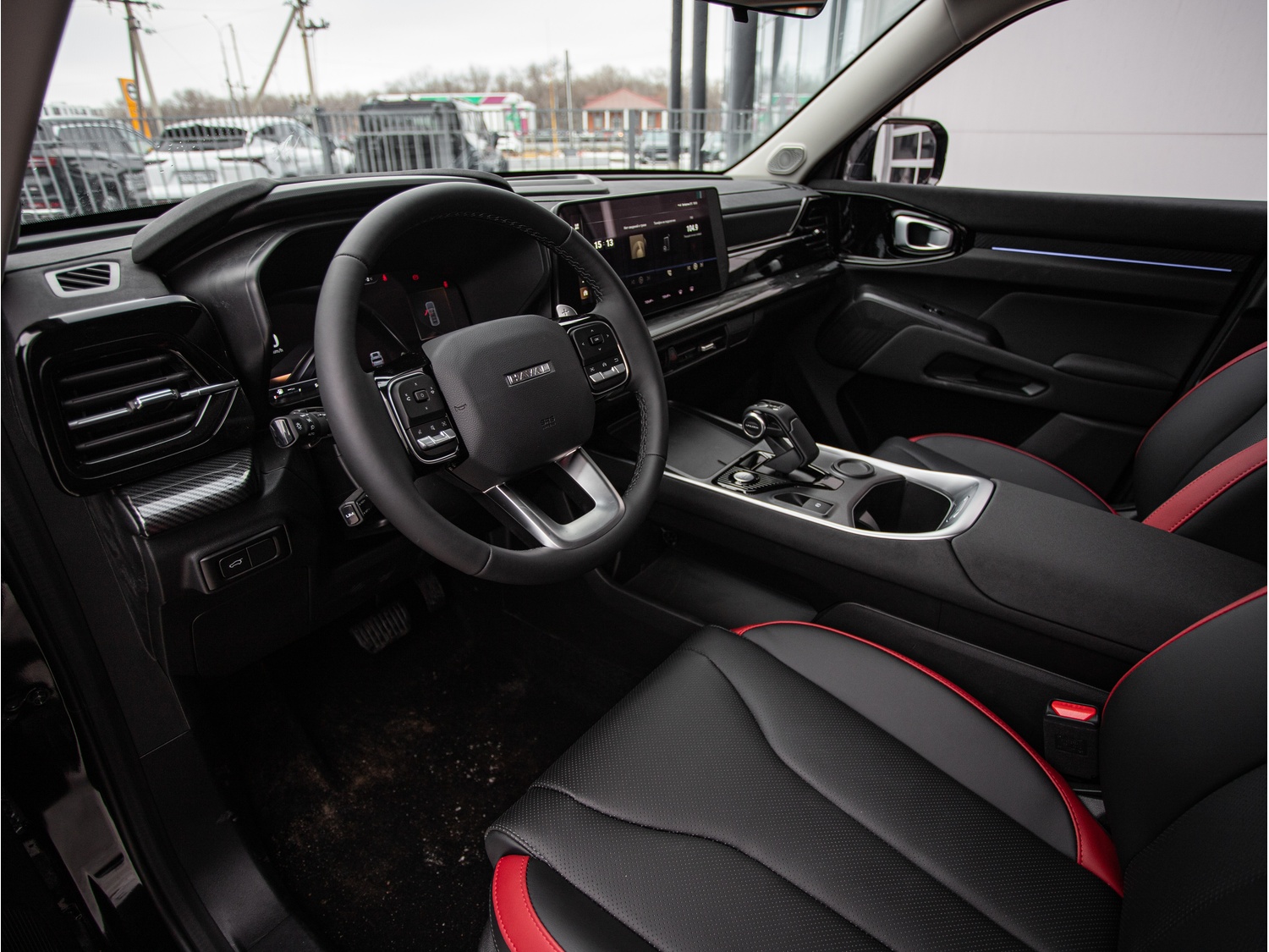 - Черный салон с красными вставками (сиденья)