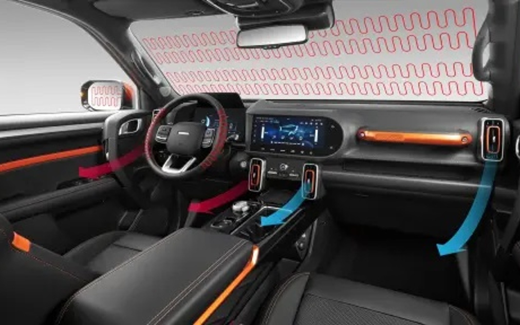 Дизайн Хавал Дарго подчеркивает внедорожный характер: массивная решетка радиатора и LED-оптика. Горизонтальные задние фонари на всю ширину кузова добавляют современности. Доступны цвета с эффектом металлик. Интерьер просторный для 5 пассажиров, с эргономичной консолью и отделкой из качественных материалов. Мультимедийный экран 10.2 дюйма поддерживает Android Auto и Apple CarPlay, аудиосистема с 9 динамиками и сабвуфером обеспечивает объемный звук. Климат-контроль, круиз-контроль и камеры 360° повышают удобство.