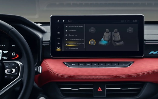 Салон Хавал Джолион комфортный и технологичный. Мягкие материалы отделки, мультимедиа с 10-дюймовым сенсорным экраном, поддержка Bluetooth и USB-портов создают удобство и функциональность. Кресла с подогревом, зоны для хранения вещей и вместительный багажник объемом 1133 литра со сложенными задними сиденьями обеспечивают комфорт во всех поездках.